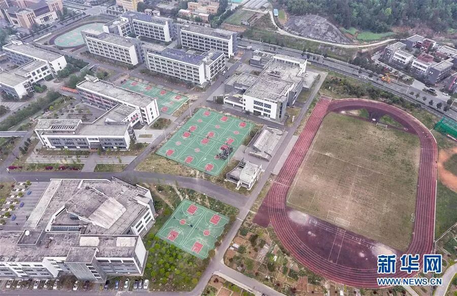 这是北川新县城的北川中学(3月29日无人机拍摄)