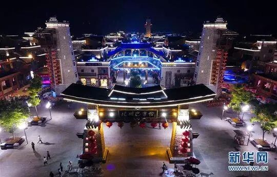 这是四川省北川新县城步行街“北川巴拿恰”(5月1日无人机拍摄)